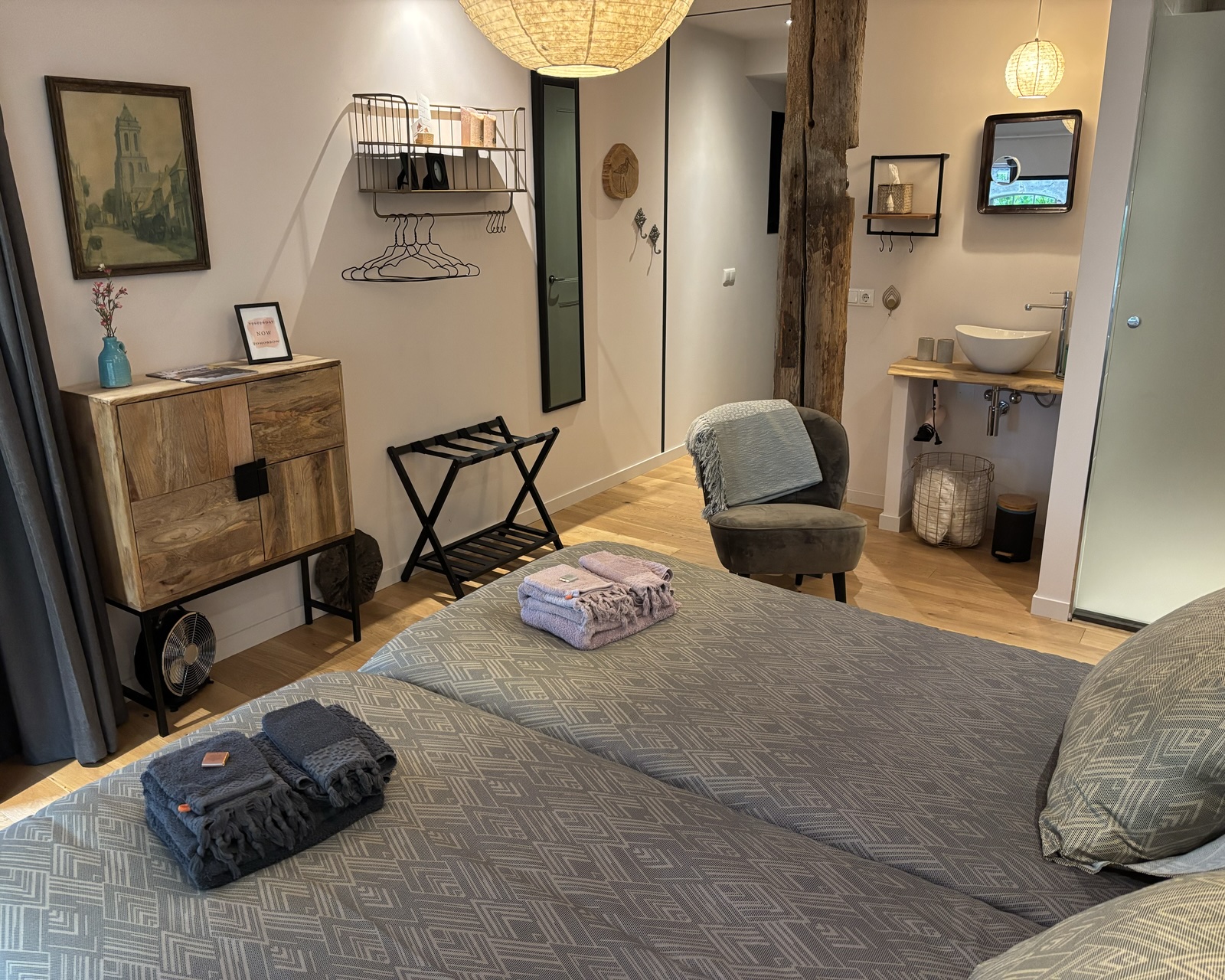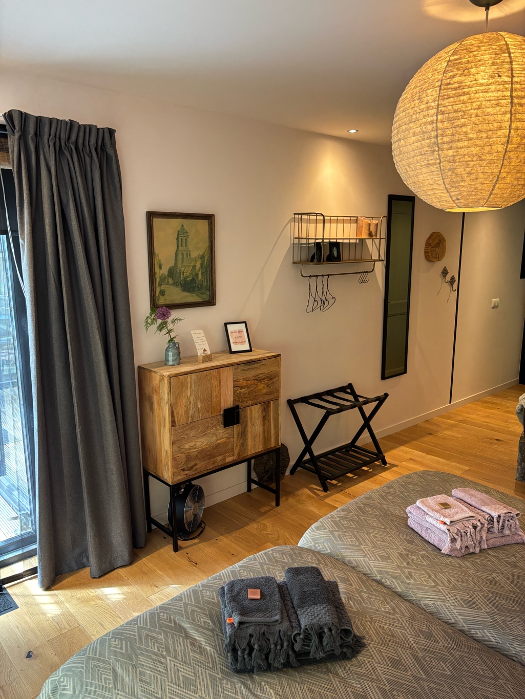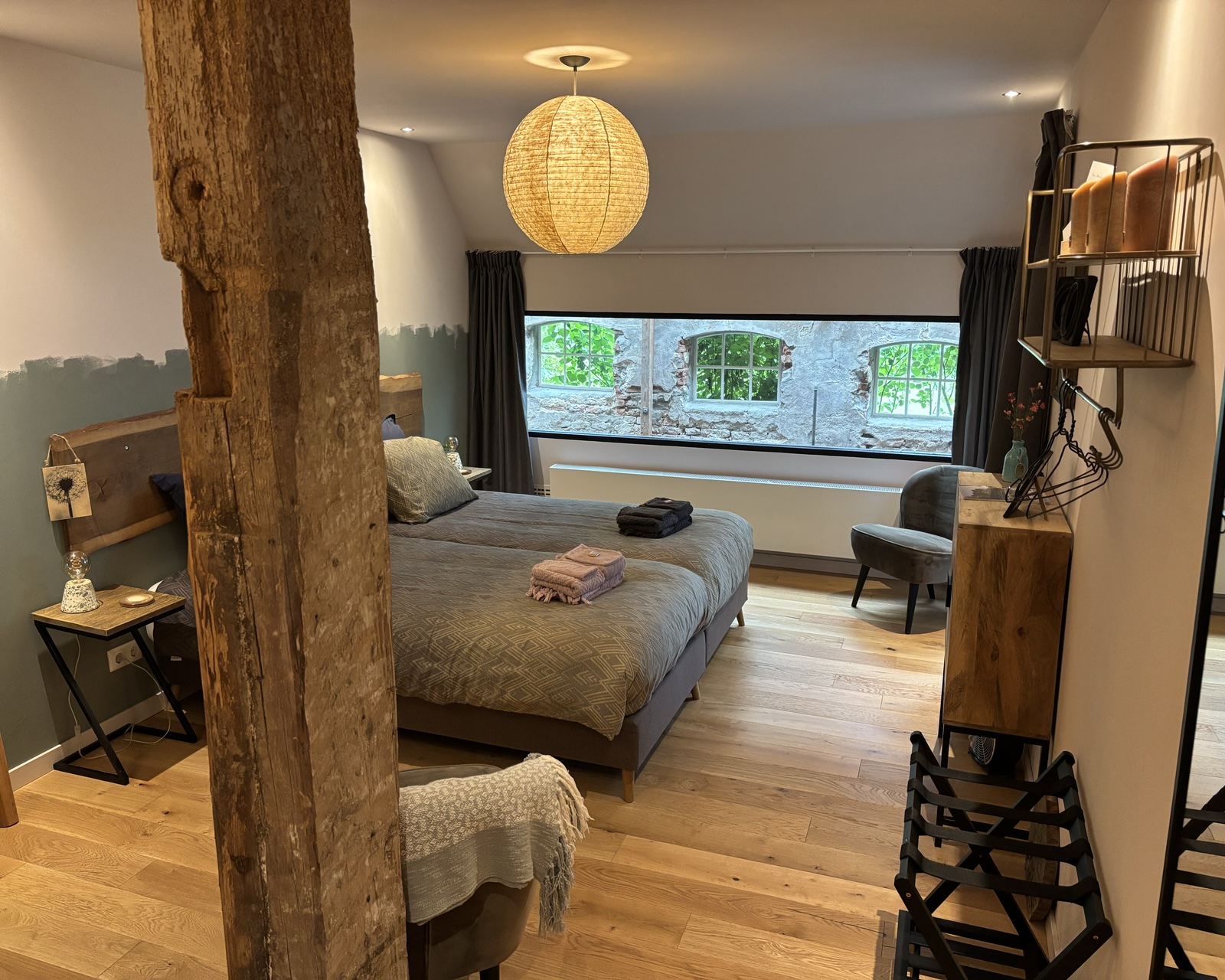• zeer comfortabel lit-jumeaux boxspring bed, 2 x 90 x 210 (op verzoek zetten we de bedden voor je uit elkaar)