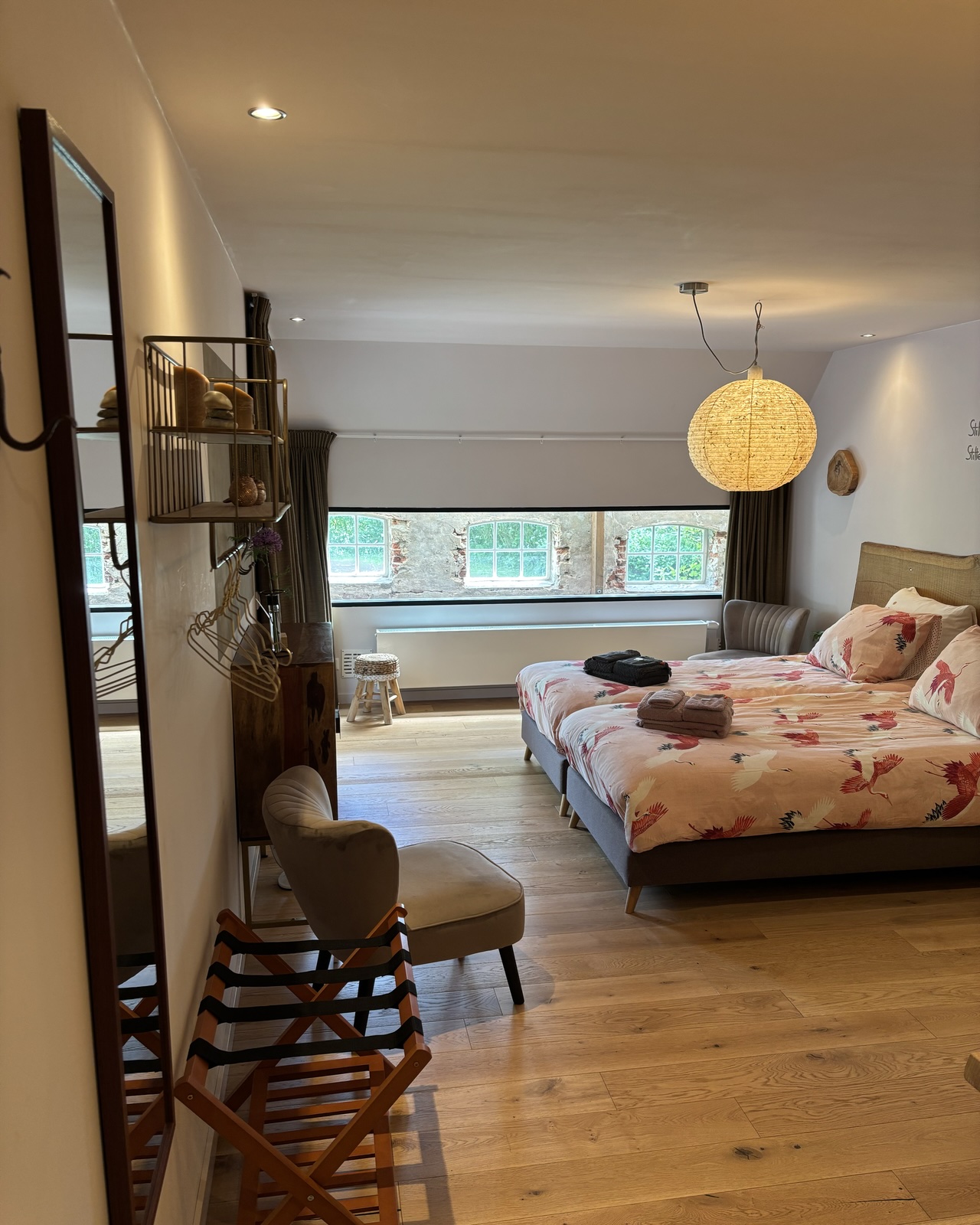 - zeer comfortabel lit-jumeaux boxspring bed, 2 x 90 x 210 (op verzoek zetten we de bedden voor je uit elkaar)